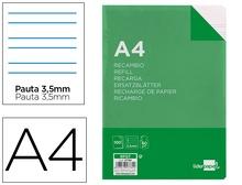 RECAMBIO A4 100h. pauta 3,5mm papel 75g 4 taladros Liderpapel